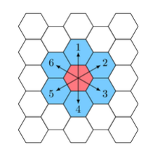 在一個由正六邊形拼成的平面上,一開始有一個人站在其中一個六邊形上,給定個行動,每筆行動會有一個方向和移動的距離,代表人會沿著該方向移動步